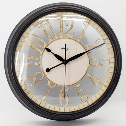 OEM Non Ticking Quartz Metal Frame Wall Clock With Convex Glass