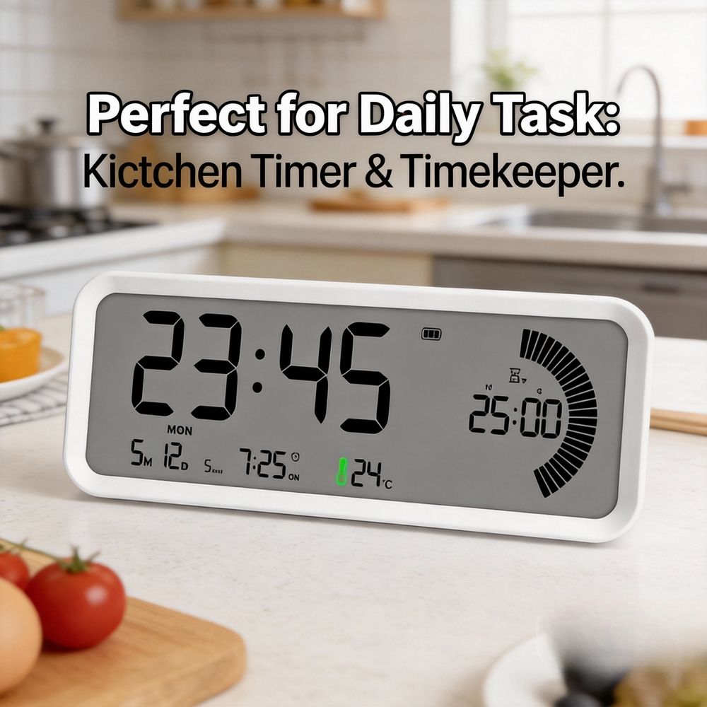 199 Minutes Max Set Electronic Digital Countdown Timer Multifunction Date Temperature Display LED Illuminated Battery Operated
