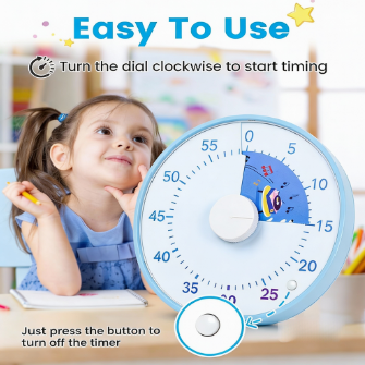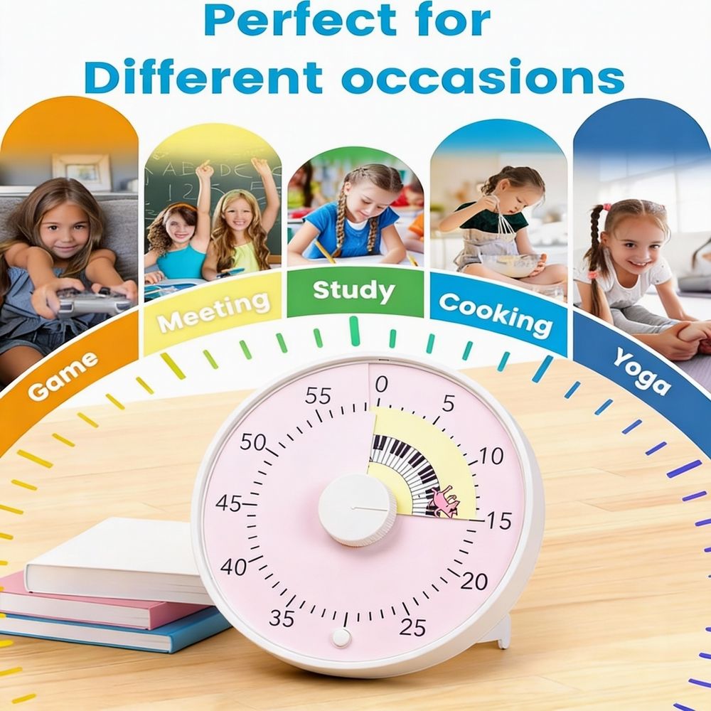 8-Inch 60-Minute Round Visual ABS Plastic AA Battery Pomodoro Timer Kitchen Cooking Study Kids Home Classroom Use