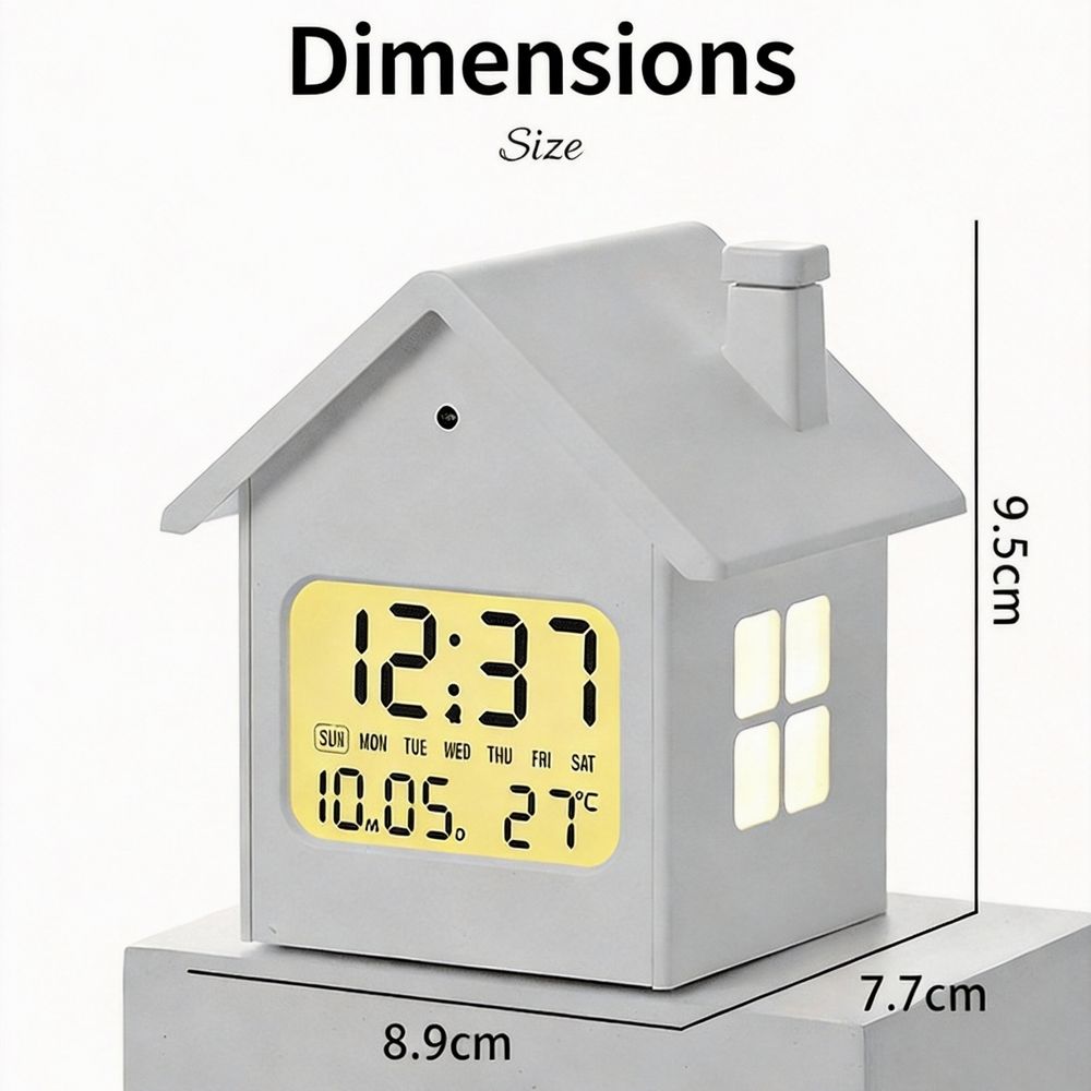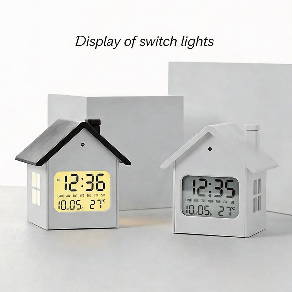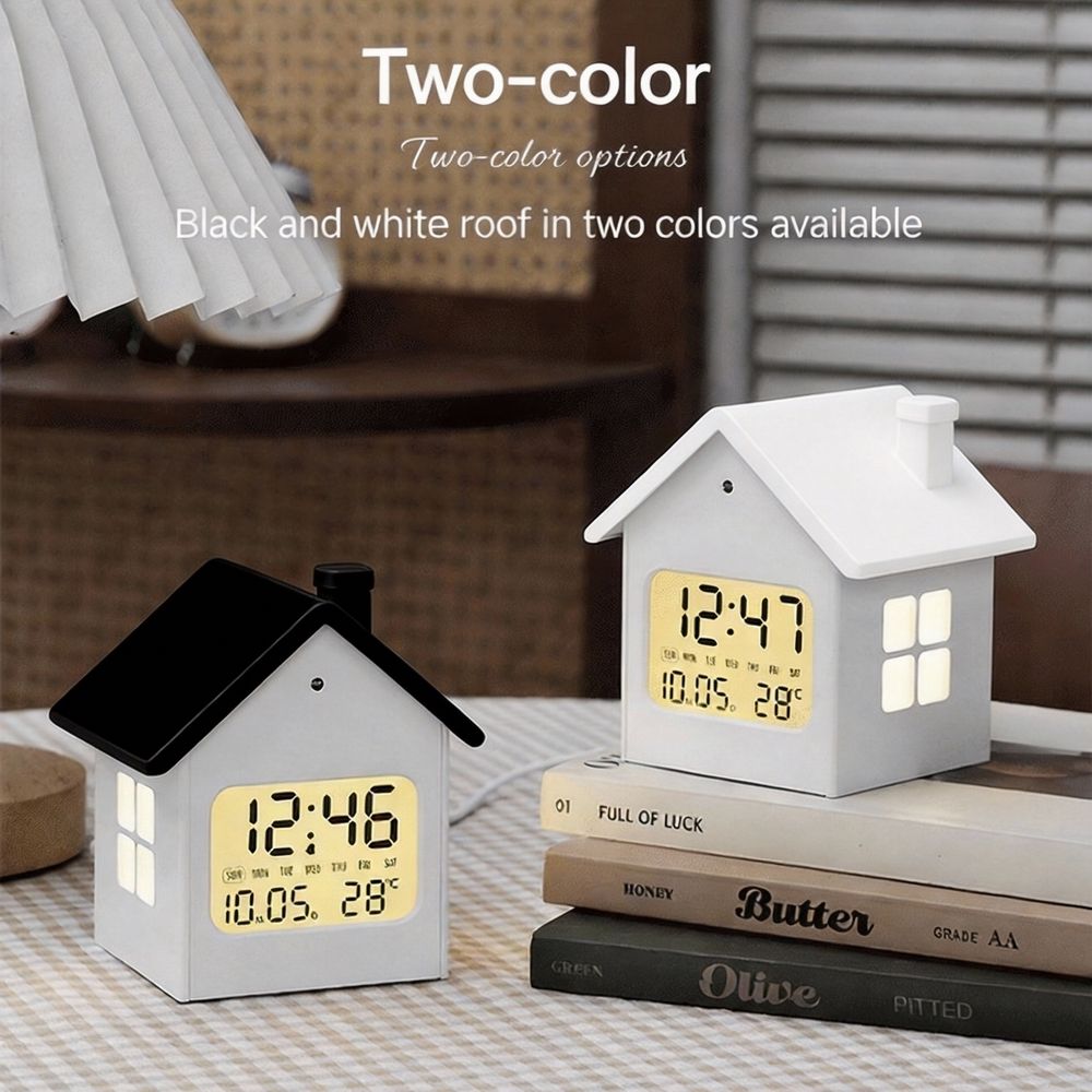 Creative Modern Plastic House Decoration Children's Alarm Clock Lovable Wind Multifunctional Night Light Bedside LCD Clock Date