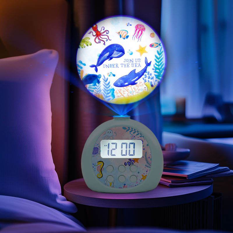 Customized Diagram Trending Kids Smart Sleep Trainer LCD Night Light Projector Desk Alarm Clock Timer Digital Display Plastic