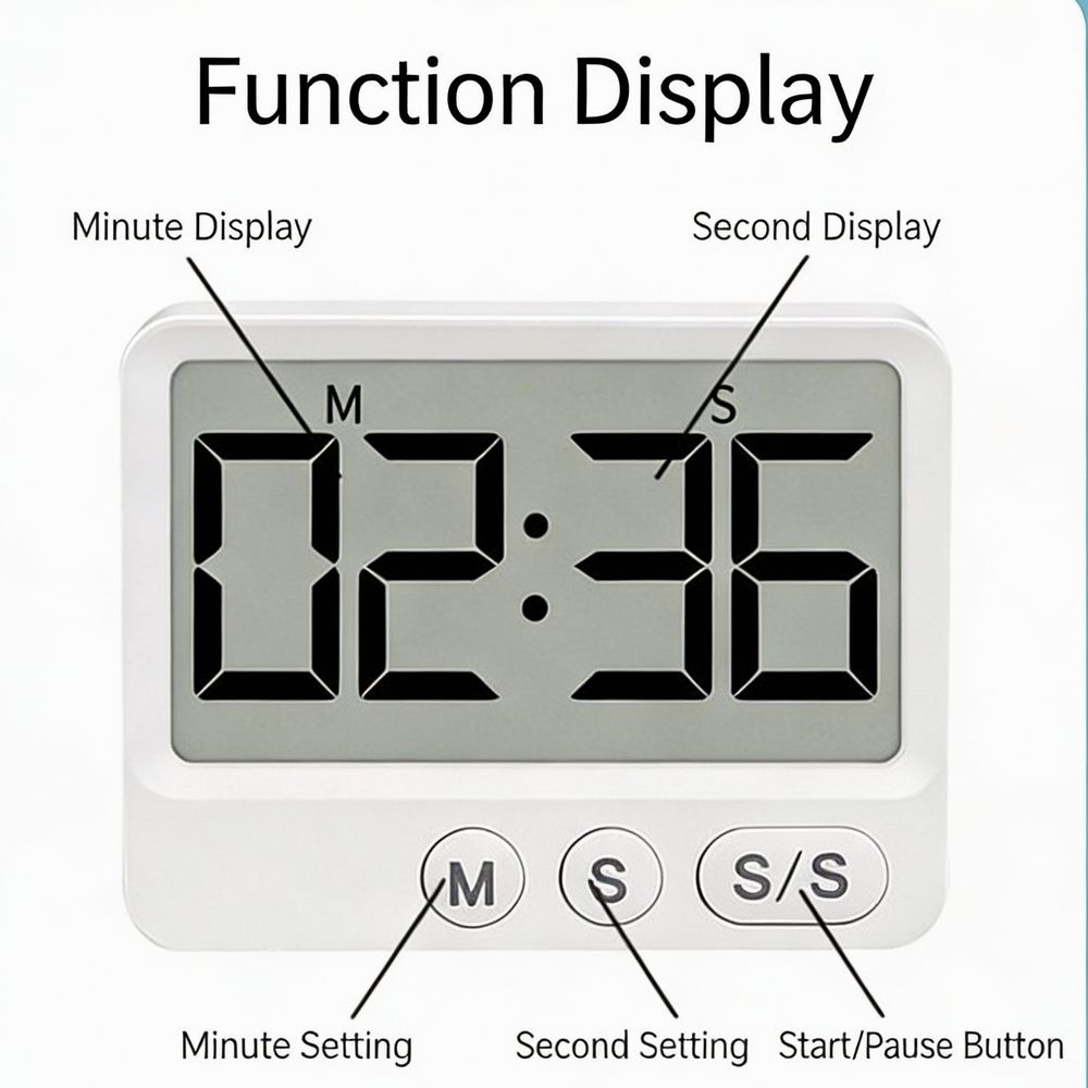 Digital Countdown Timer with Magnetic Suction Large Screen Kitchen Timer & Alarm Clock Electronic ABS Material AAA Battery