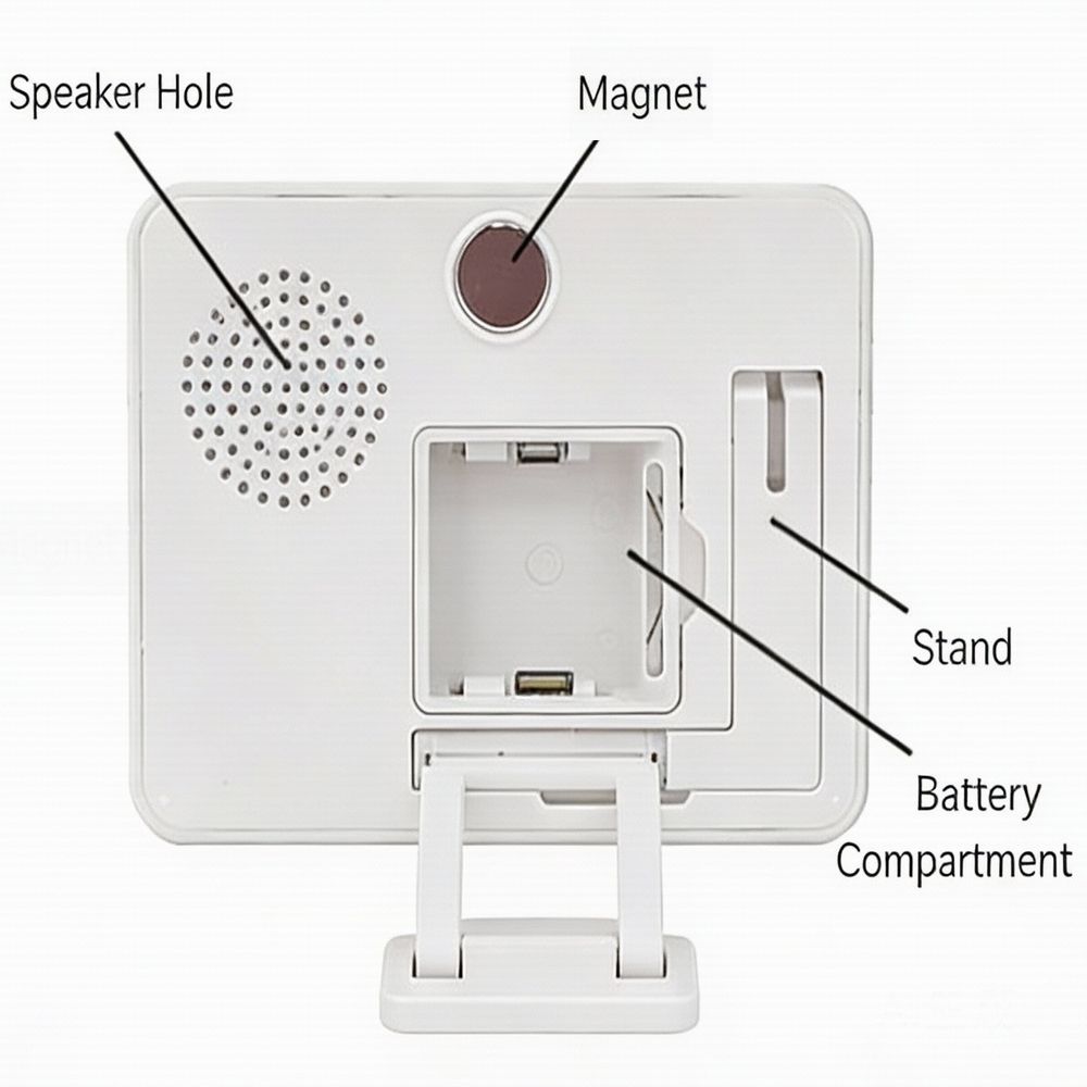 Large LCD Screen – Clear display of time, temperature, and humidity