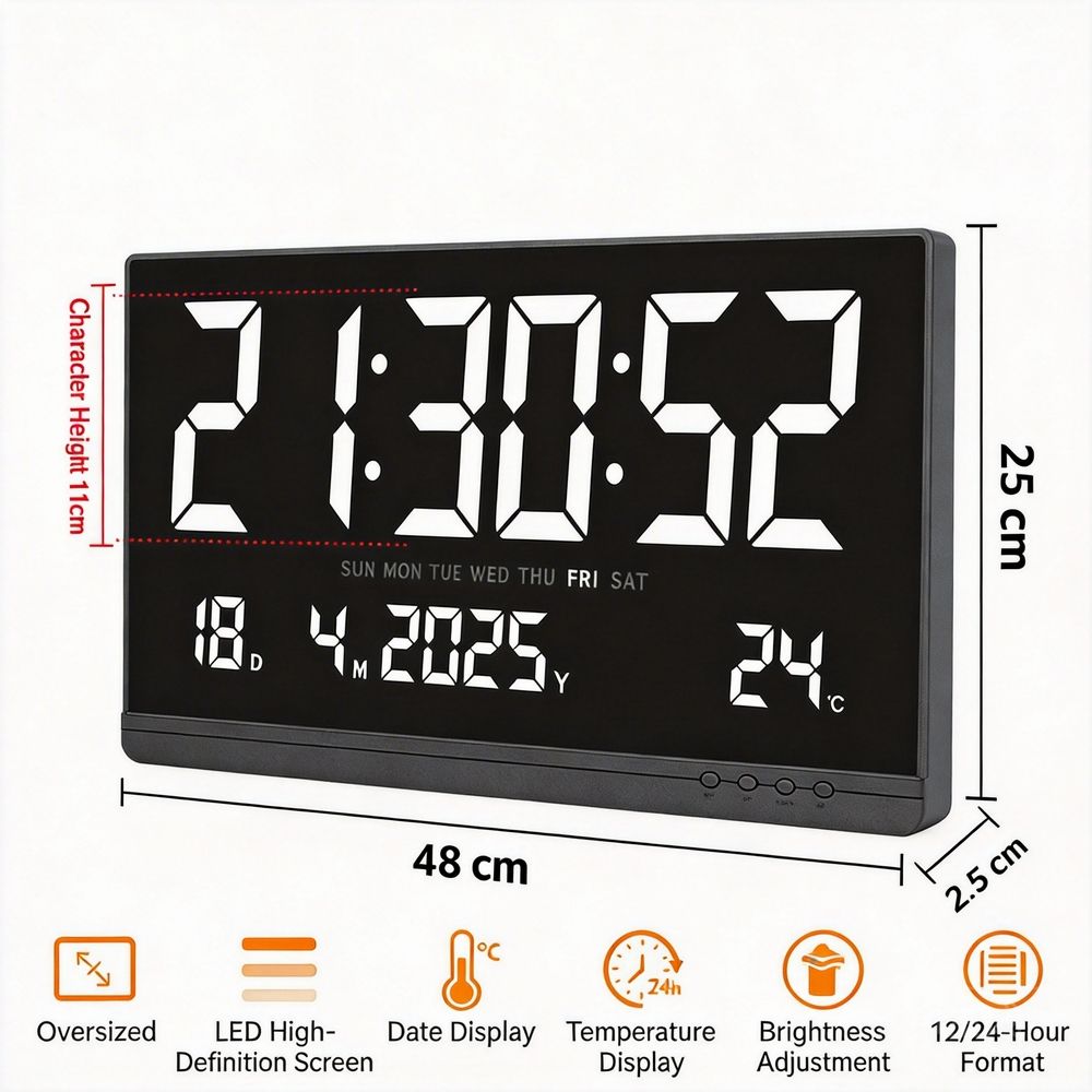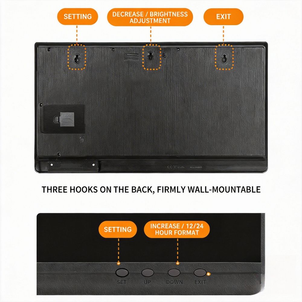 Large Digital Wall Alarm Clock with Remote Control LED Oversized Electric Clock Calendar Geometric Shape USB Cable Operated