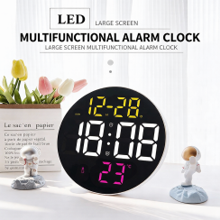 Large Screen Plastic Multifunctional LED Wall Clock Modern Digital Alarm Calendar Remote Control Temperature Display Battery