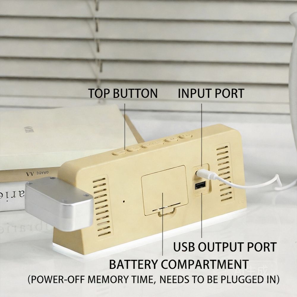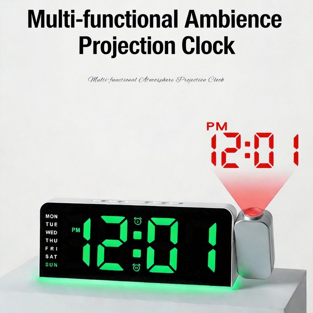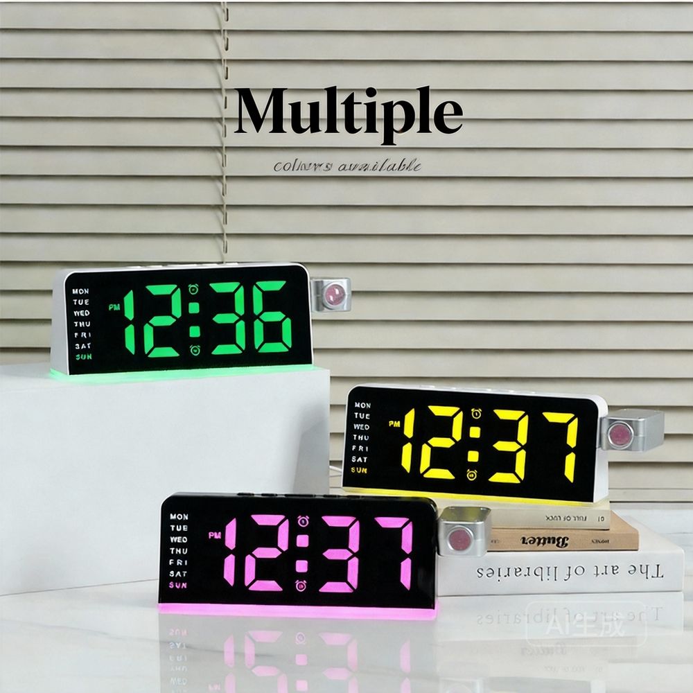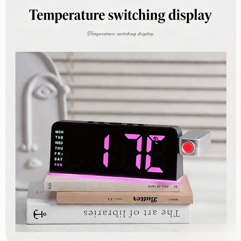 LED Digital Projector Alarm Clock Desk Lamp with Ambient Light Modern Design Plastic Material Custom Features for Home Bedroom