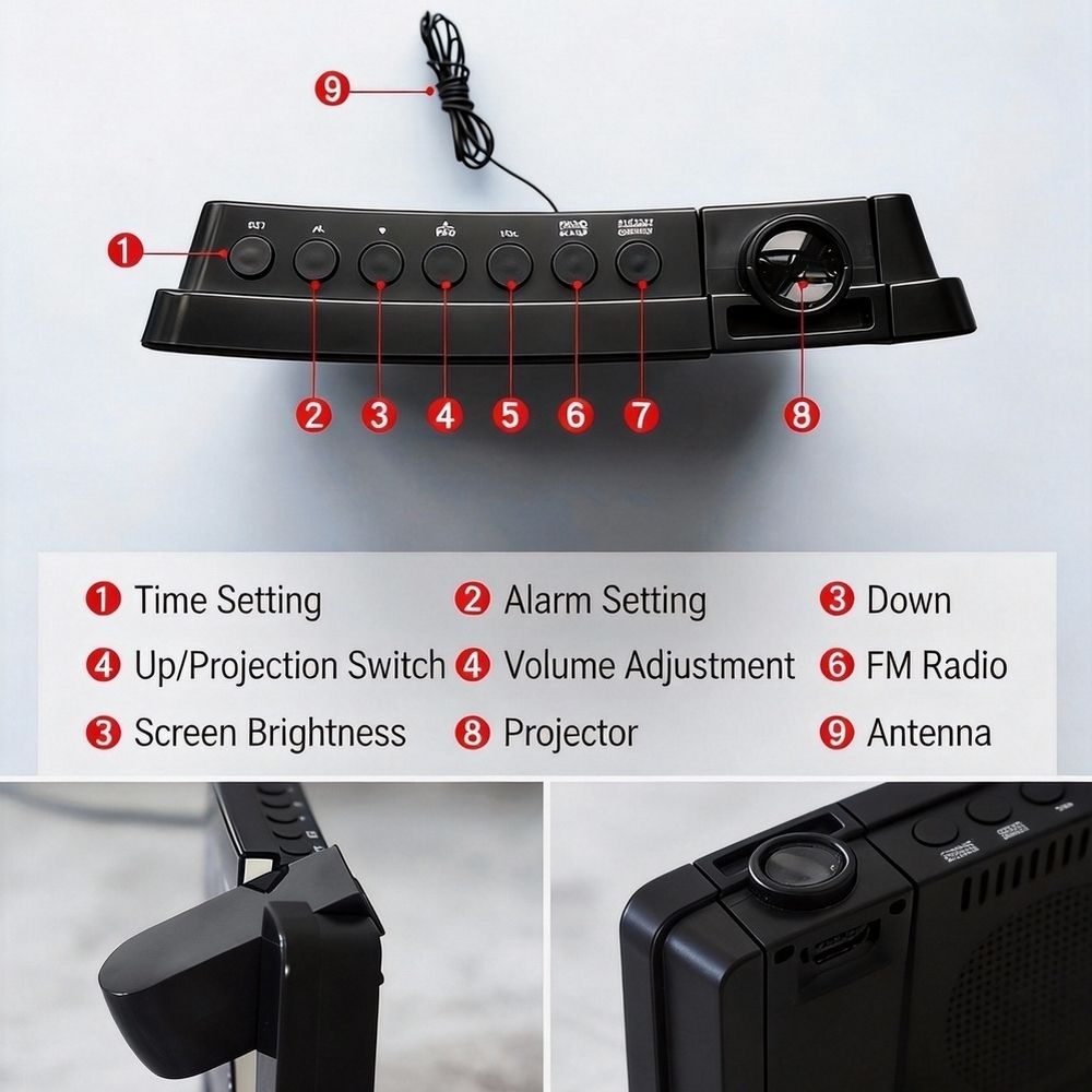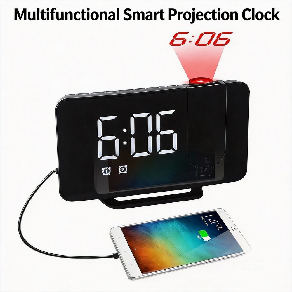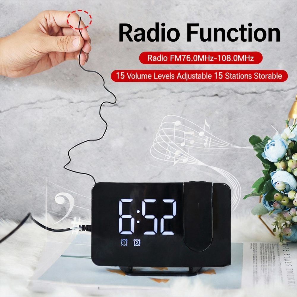 Modern Home Radio Projection Alarm Clocks Large Screen LED Display Electronic Clocks Curved Dual Alarm Clocks and Table Clocks