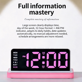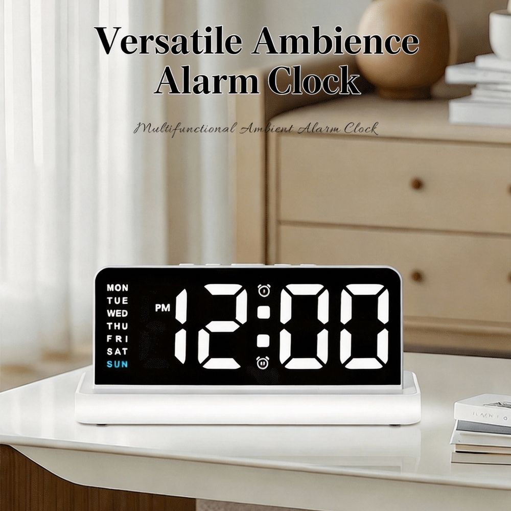 Modern LED Digital Alarm Clock Large Screen 2 Alarms Brightness Adjustment Week Date Display Night Light USB Powered Square