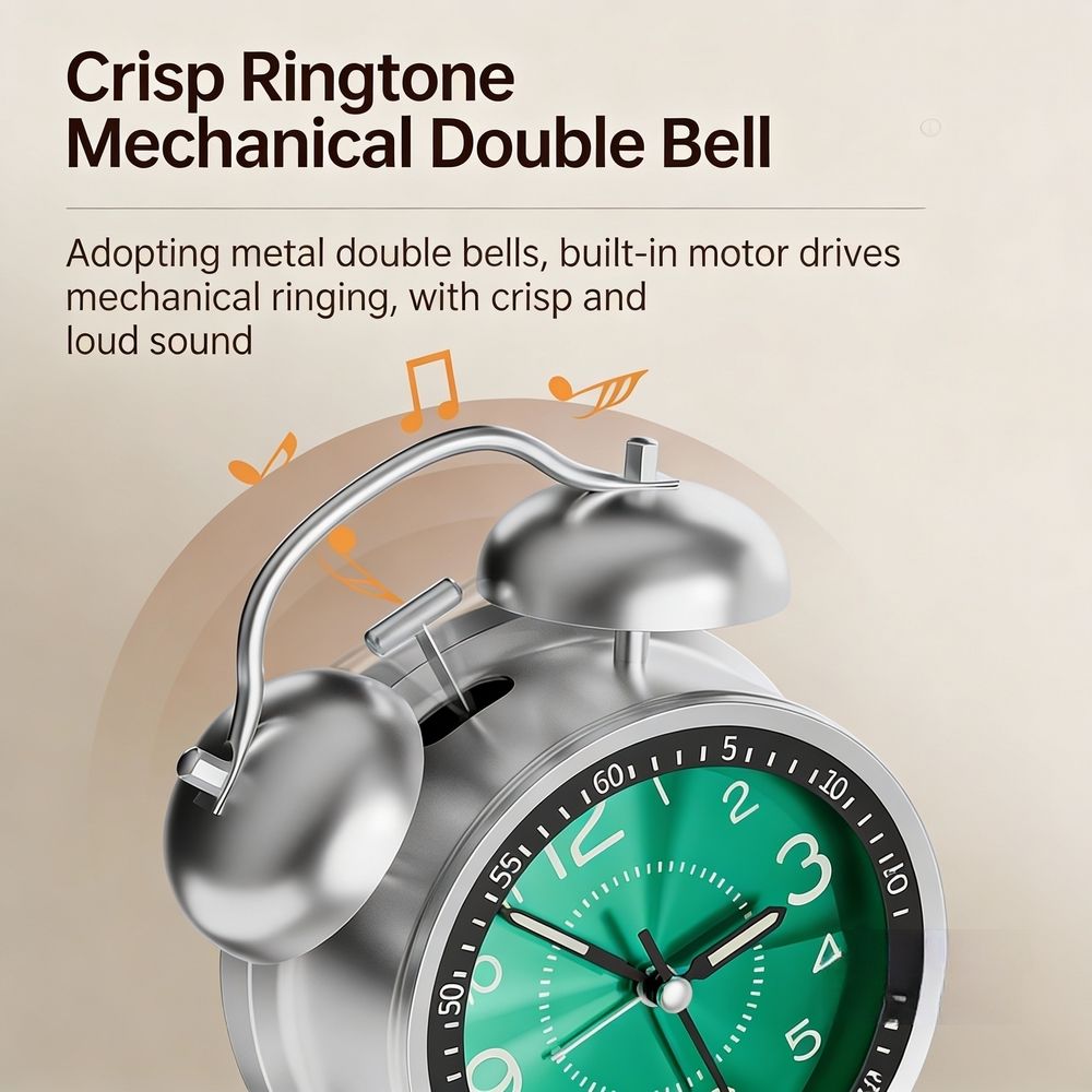 Modern Luxury Metal Ringing Quartz Analog Alarm Clock Students Creative Small Tabletop Kitchen Desktop Clock Wake-Up Artifact