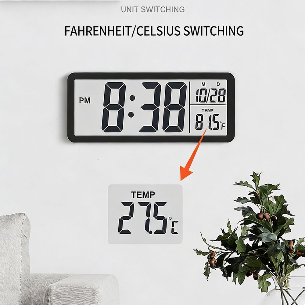 Large LCD Screen – Clear display of time, temperature, and humidity