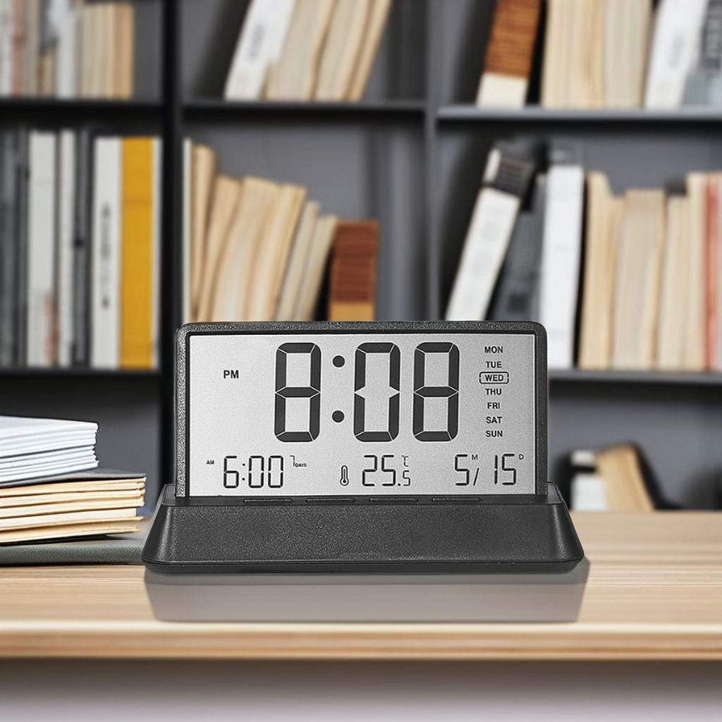 Large LCD Screen – Clear display of time, temperature, and humidity