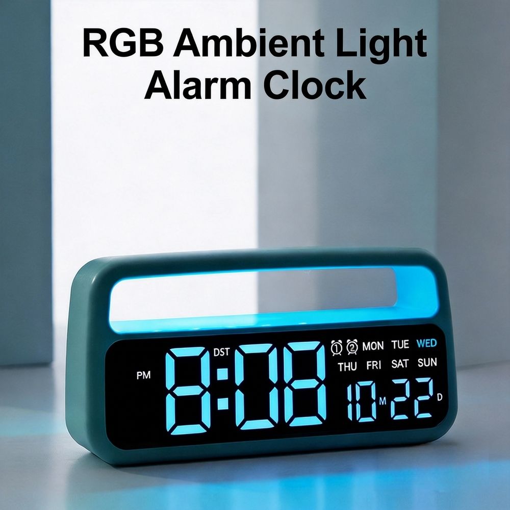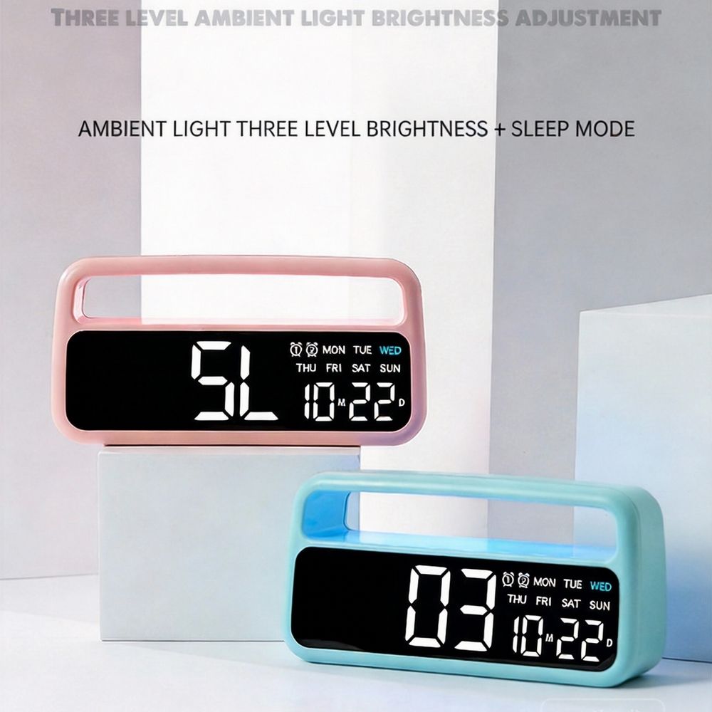 New Modern Square Plastic Desk Office Alarm Clock with Multi-Function Digital Ambient Light Calendars and USB Charging Port