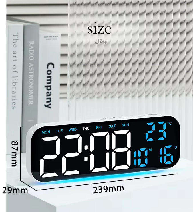 Top-Selling LED Digital Alarm Clock with Color Display & Sound Control Display Type Digital Model Number 2H725 Special Feature Calendars Power Source USB charging Size 16*6*2.5cm Material ABS MOQ 500pcs Logo & Color Accept Customization Capacity 35000 - 50000 Each Month