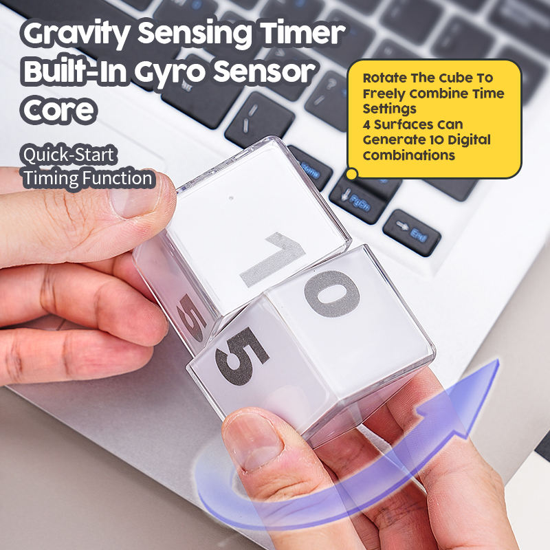 Rechargeable Small Square Kitchen Timer Flip Induction Magic Cube Gravity Sensor Countdown Electronic Time Household Plastic