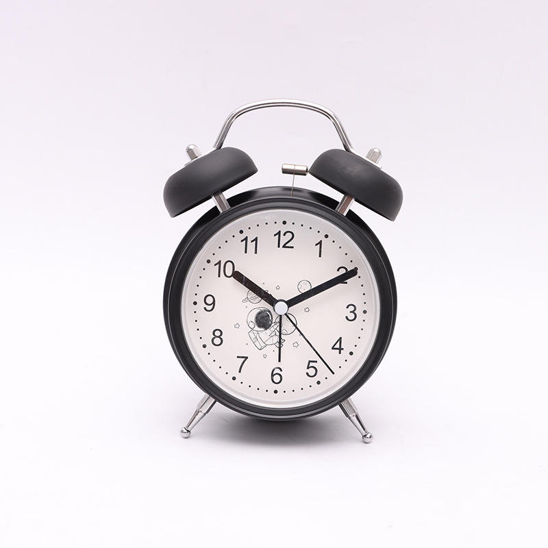 4" Twin Bell Silent Non-Ticking Quartz Battery Operated Clock Table Extra Loud with Backlight for Bedside Table  Display Type Needle style Model Number 240703 Special Feature table clock  Power Source Battery Powered(AAX1) Size 4 inch  Material  metal  MOQ 500pcs Logo & Color Accept Customization Capacity 35000 - 50000 Each Month