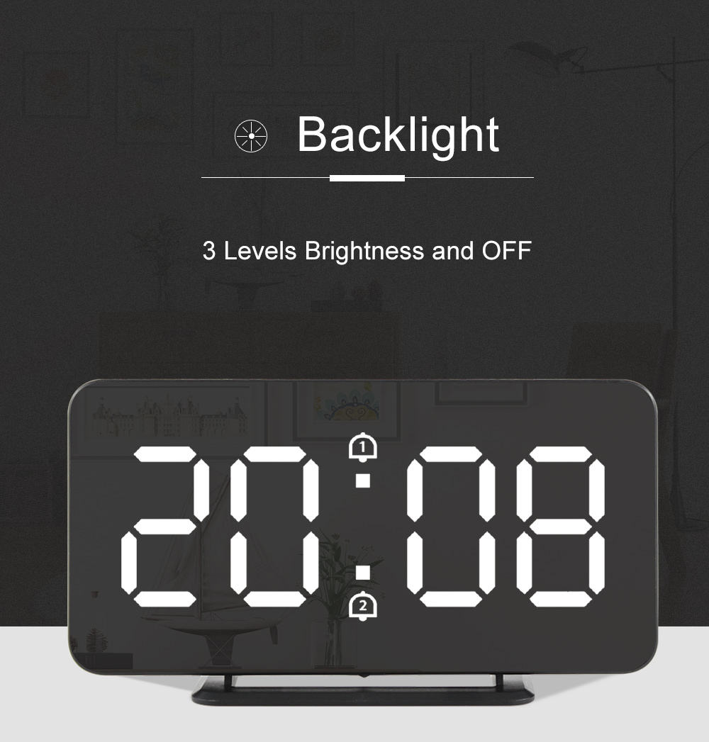 USB Charger Brightness Adjust Electric Digital Color Alarm Snooze Table Mirror LED Clock